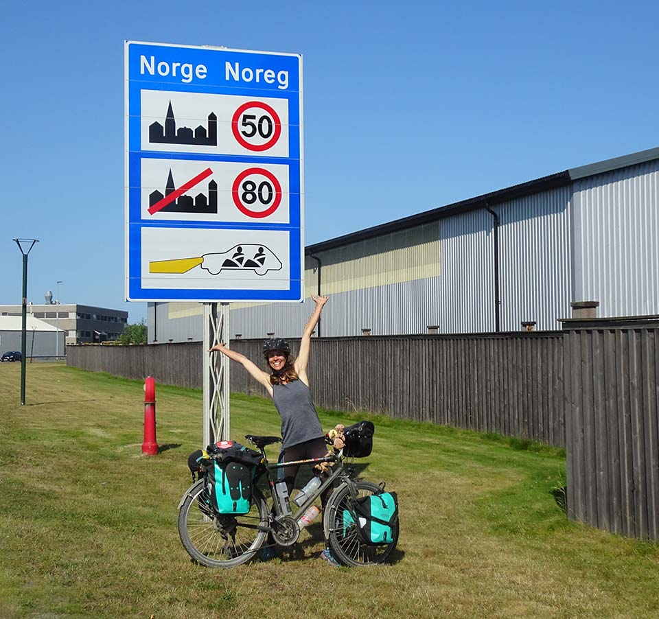 Anschließend ging es per Fähre nach Larvik, Norwegen. Das vielleicht wildeste Land Europas grüßte von seiner besten Seite: Sonne satt bei 25 °, traumhafte Badeseen und dank Jedermannsrecht, stets ein toller Platz zum Zelten. Über Geilo ging es den „Rallarsvegen“ entlang, der ehemaligen Bahnarbeiter-Piste über die traumhafte Hochebene „Hardangervidda“. Über Bergpässe, Tunnel und einer Fährverbindung ging schließlich nach Trondheim. Von dort aus fuhren sie entlang der Traumstraße „Kystriksveien“ an der norwegischen Atlantikküste Richtung Norden. Als nördlichstes Ziel erreichten sie die Inselgruppe der Lofoten – perfekt für eine Kombination aus Radfahren und Wandern. Für knackige Bergtouren wurden die beiden mit atemberaubenden Ausblicken auf Inseln und Fischerdörfer belohnt. Von hier aus ging es auf einem Hurtigruten-Schiff zurück aufs Festland und auf dem Rad weiter nach nach Schweden. Dort angekommen führte die Route über Gravelstraßen Richtung Süden. Dabei begegneten Tiphaine und Martin nur selten Autos und entdeckten die Einsamkeit der dünn besiedelten, wilden Gegend. Aber obwohl dort auch Vielfraße, Bären, Wölfe und Luchse weit verbreitet sind, durften die beiden sich mit unzähligen Rentieren begnügen. Über Göteborg ging es dann langsam zurück nach Deutschland.