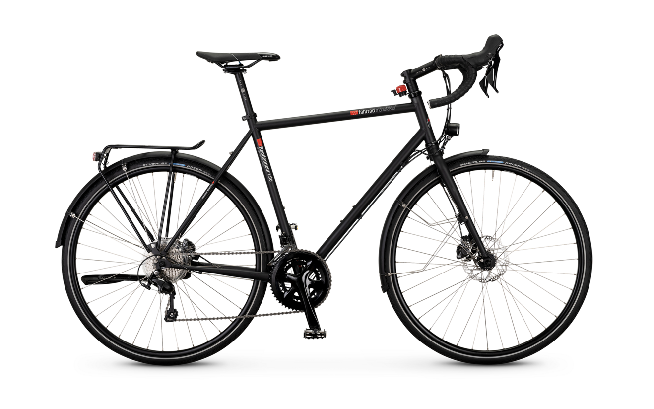 We focus on proven sportiness with the Shimano 105 road bike groupset – after all, this robust groupset has been one of the best sellers on the component market for more than 30 years. And the rest of the configuration is also impressive: hydraulic 160 mm disc brakes from Shimano, Ritchey Comp Logic headset, Busch & Müller lighting system, Racktime pannier rack, Model X Superflow Comfort+ saddle from Selle Italia – all in all, a durable total package that is just as much fun on bike tours as it is on weekend trips or daily commuting to work.